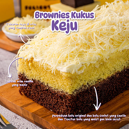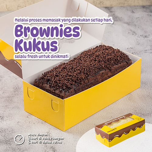 Variasi pengolahan kue salah satunya adalah dengan melalui proses kukus atau mengukus. Tidak asing juga jika mendengar proses Brownies yang dikukus. Brownies Kukus Delicute hadir dengan dua varian rasa yang berbeda yaitu Coklat dan Keju. Brownies Coklat dengan toping coklat yang melimpah untuk Anda yang menyukai rasa manis dan Brownies Kukus Delicute Keju dengan toping keju yang gurih untuk Anda pecinta rasa asin atau gurih. Packing yang menarik dan aman sehingga menjadikan Brownies Kukus Delicute sebuah hantaran yang sangat premium. Brownies Kukus Delicute memiliki dimensi ukuran dengan panjang 23 cm, lebar 11,3 cm dengan ketinggian setinggi 7 cm.